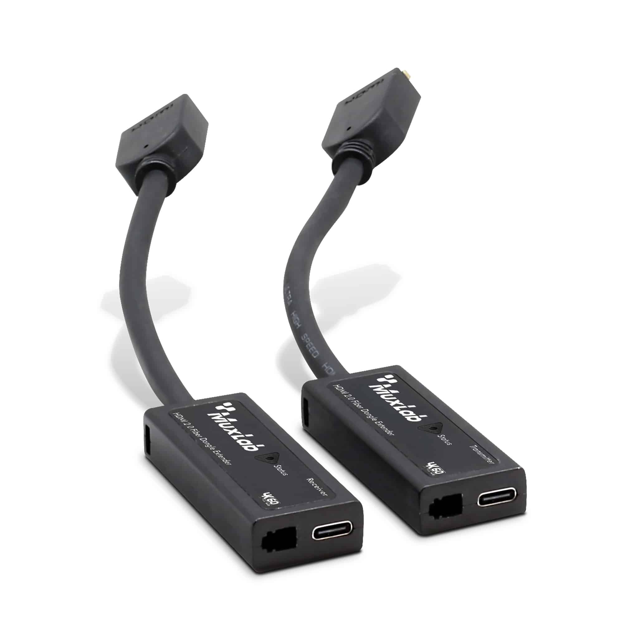 The HDMI 2.0 Fiber Dongle Extender Kit is an HDMI extender that uses fiber